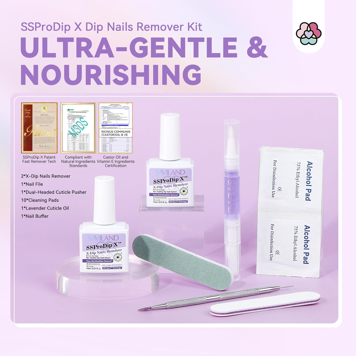 SAVILAND Dip Powder Remover Kit 2Pcs: 15ml Gentle & Safe Dip Nail Remover With Cuticle Oil Nail File Tools No Soak or Wrapping Removal Easy Remove at Home Gift For Women
