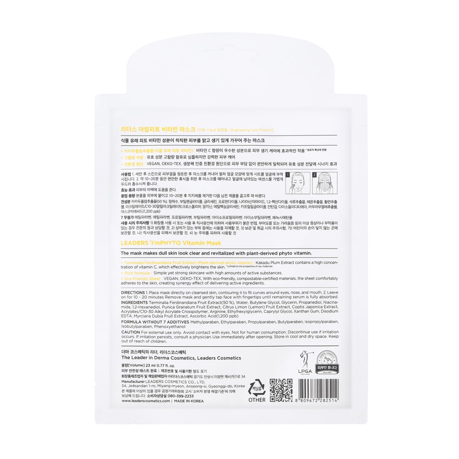 - CERTIFIED VEGAN & CRUELTY-FREE β Leaders I'M PHYTO Vitamin Mask has been officially certified by Italy's V-Label, ensuring our products are free from animal-derived ingredients and have not been tested on animals, so you can feel good about indulging in our skincare products. Ideal for individuals prioritizing ethical and sustainable beauty solutions, our Vitamin Mask delivers effective skincare results with eco-friendly practices. Embrace the feeling of nourished skin and good conscience!