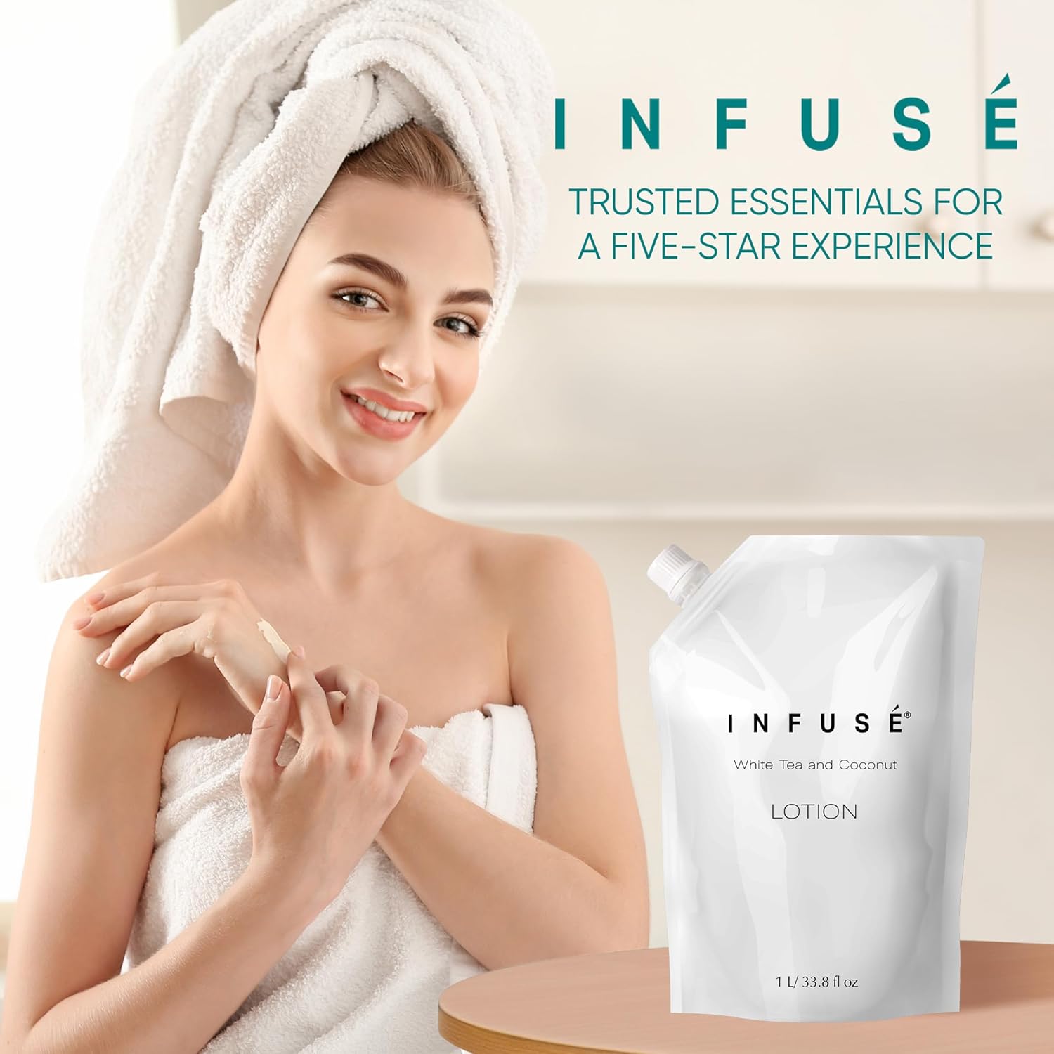 - HOTEL-QUALITY, LUXURIOUS AMENITIES: Enhance your guest experience with the Infuse White Tea and Coconut in a convenient 1-Liter Refill Bag, designed to refill wall-mounted and stand-alone dispensers. Enriched with white tea, coconut, organic aloe, and olive oil, this gentle, daily-use formula suits sensitive skin and hair. Ideal for hotels, vacation rentals, guest bathrooms, and homes, these premium amenities add sophistication and functionality to any hospitality space.