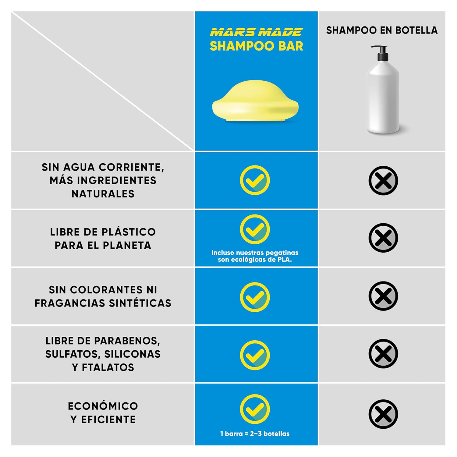 - PLEDGE TO QUALITY. We love hearing how much customers appreciate the effectiveness of Mars Made Shampoo Bars! Our bottle-free bars provide luscious locks and are equivalent to at least 2 bottles of liquid shampoo. Mars Made proudly supports adults with special needs through the production and packaging of every product.