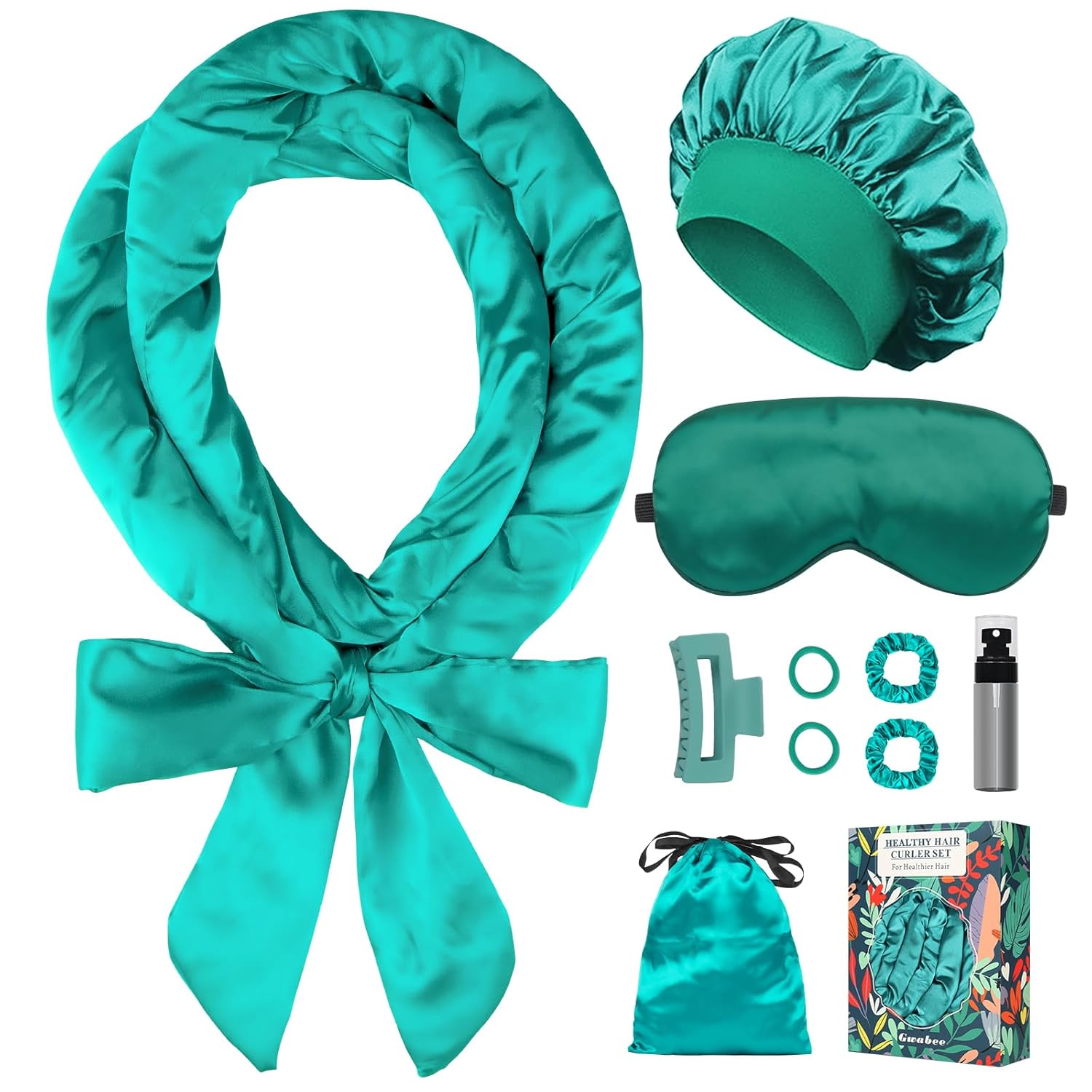 - Thoughtful Set for Women: Our heatless curling set includes 10 items: 1 x 70-inch long satin curling rod headband, 1 x satin hair bonnet for sleep, 1 x silk satin sleep eye mask, 1 x hair clip, 2 x satin hair ties, 2 x elastic hair ties, 1 x satin storage bag, and 1 x spray bottle. This all-in-one curling rods set is packaged in an exquisite box, making it the perfect present for your wife, mother, daughter, friends, or colleagues