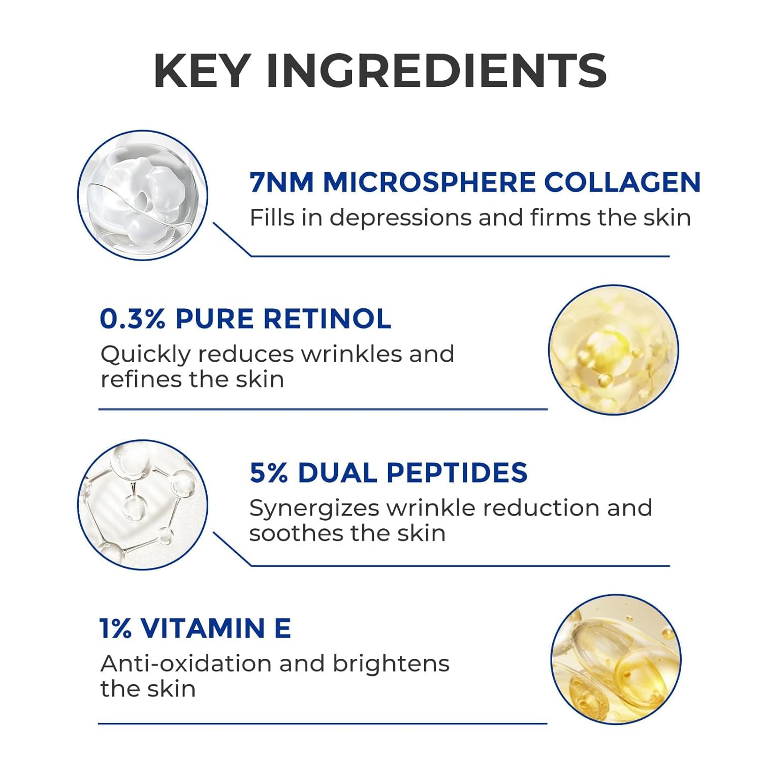 - [ FAST WRINKLE CARE ] Utilizing advanced 3D Spherical Collagen technology, this formula encases retinol pro at a 7nm size to visibly improve fine lines, crow's feet, and nasolabial folds. It supports skin firmness and elasticity for a smoother appearance.