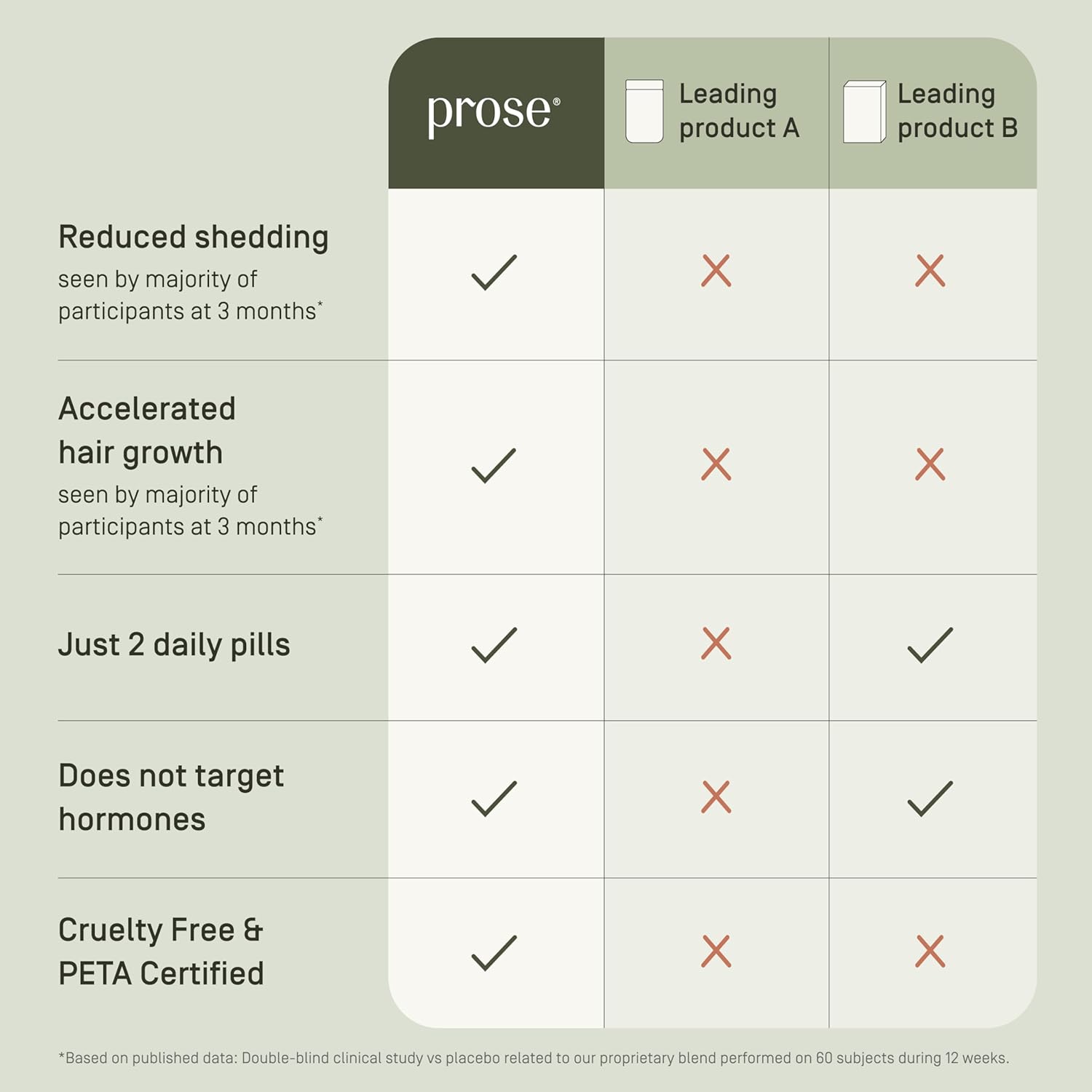 Prose Women’s Age 18-44 Hair Growth & Fullness Boost Supplements, Clinically Proven Growth Complex for Visibly Fuller Hair in 90 Days, Vegan, Biotin, No Hormone Disruptors, Gluten Free, 1 Month Supply