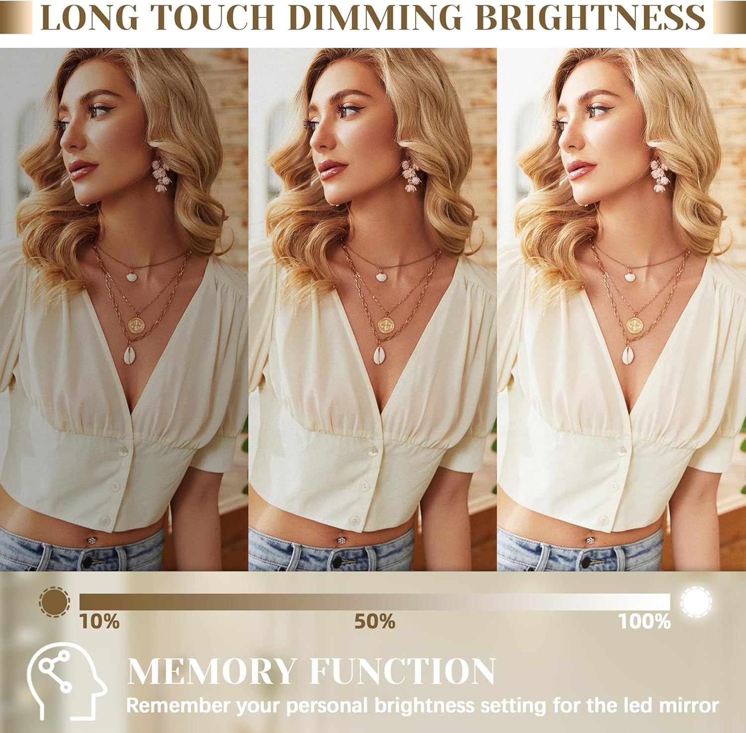 - 【Professional Lighting Studio with 3D Illumination】 Achieve studio-grade makeup precision with edge-to-edge LED halo lighting that eliminates facial shadows. Touch-sensitive controls adjust 3 professional color temps (3000K Warm/4500K Natural/6000K Cool) and 10%-100% stepless dimming, replicating 7 different daylight scenarios for true-color makeup matching.