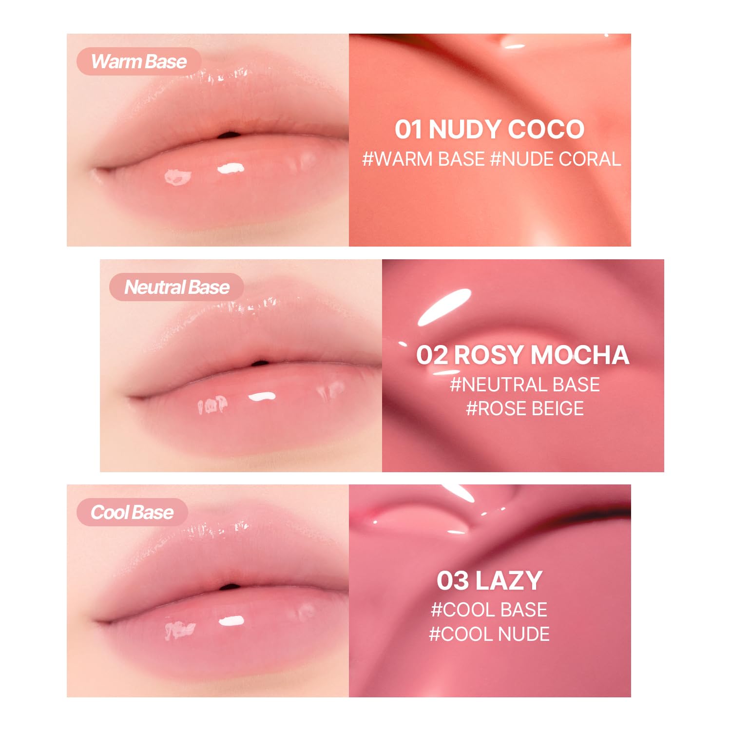 - 🪶Lightweight & Non-Sticky: A glaze bouncing tint with reduced stickiness for a comfortable feel while maintaining a long-lasting shine.