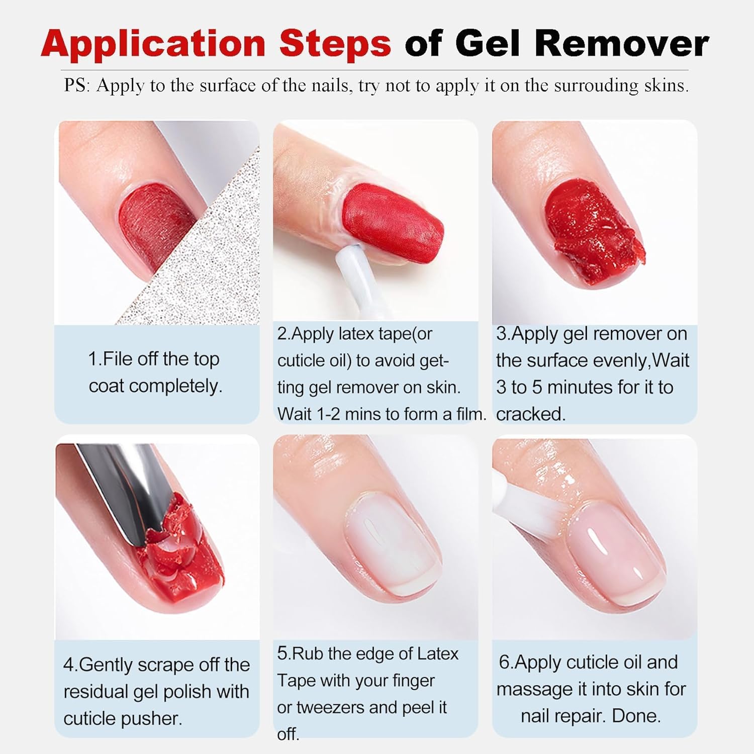 - -【4‑Step DIY Removal Process】- 1.File off the top coat with one nail file 2.Apply gel remover for nails evenly 3.Wait 2–5 minutes for polish to bubble 4.Gently push off softened polish with the second file Achieve salon‑quality nails in minutes at home.
