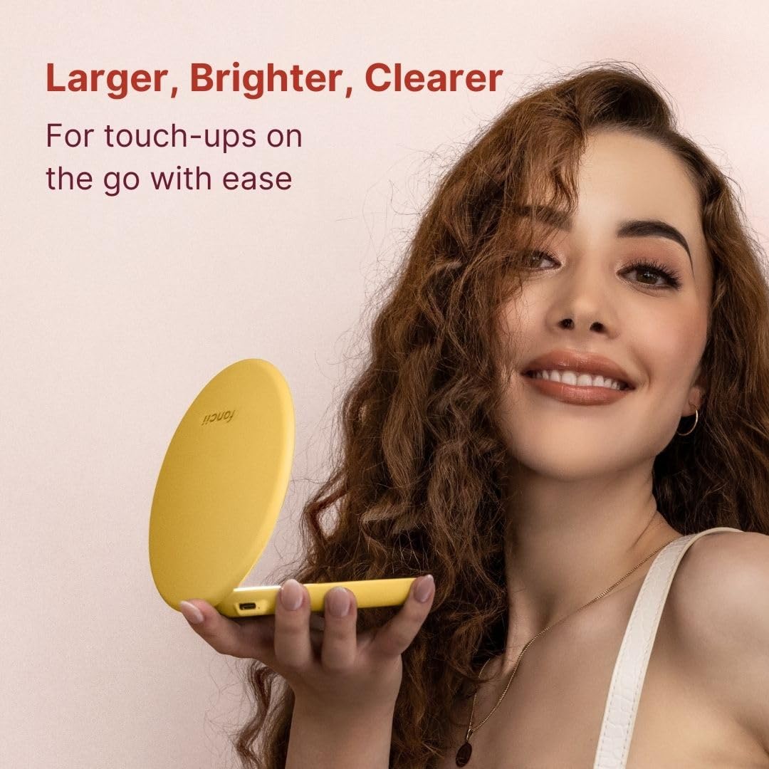 Fancii Taylor Travel Makeup Mirror with LED Light, Rechargeable, 10x /1x Magnifying, Tru-Glow Lighting System, XL Large 5” Wide | Compact Mirror for Purses (Marigold)