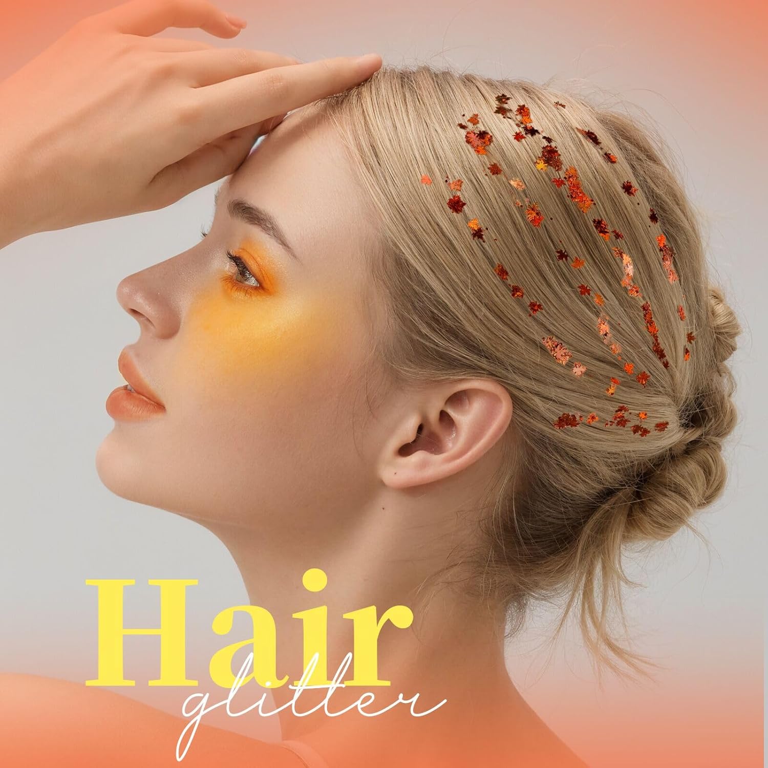 Teenitor Face Glitter, Orange Body Glitter Gel, Holographic Glitter for Face and Body, Hair, Makeup for Festival Party Cheer Makeup