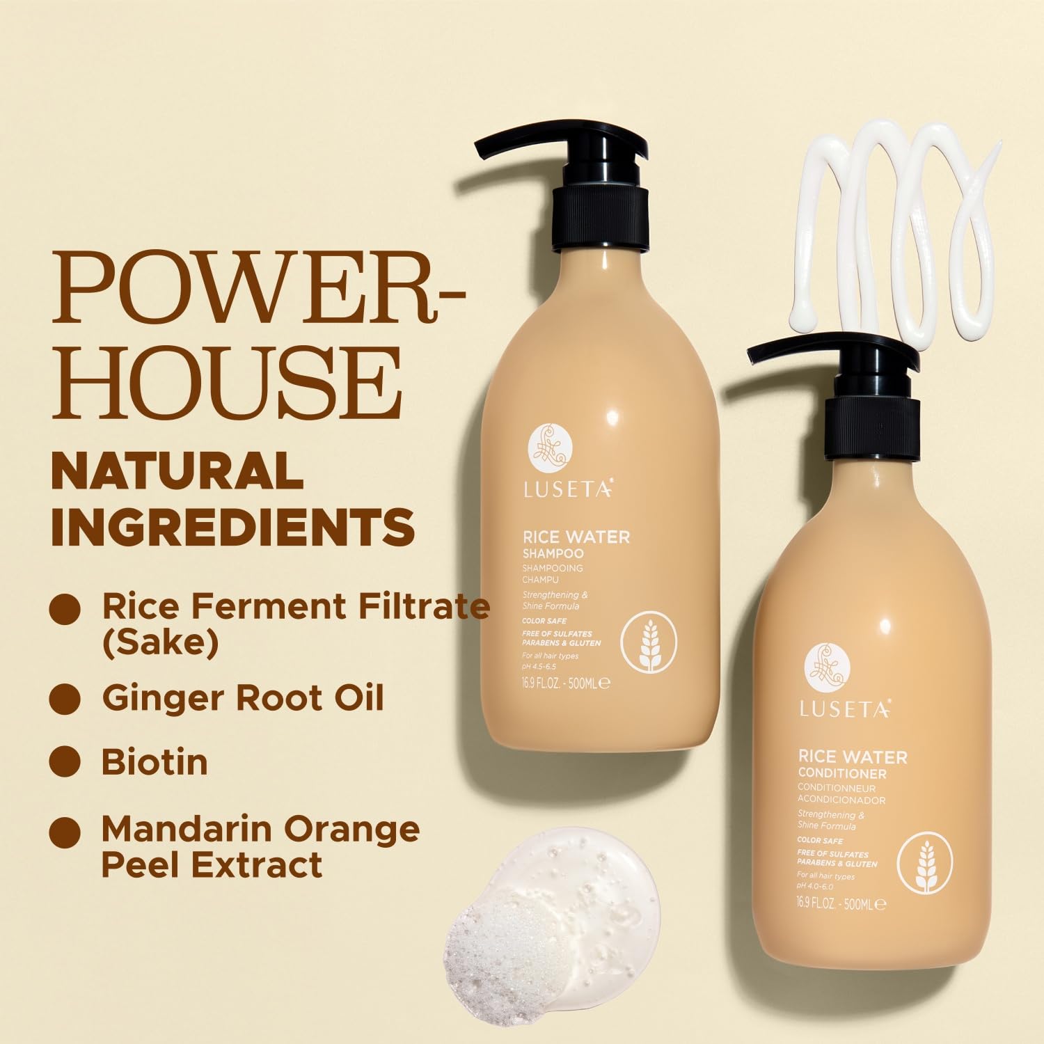Luseta Rice Water Shampoo and conditioner Set Strengthening & Nourishing Revitalizes Shine for All Hair Types Hydrating & Frizz Control for Women and Men 16.9oz*2
