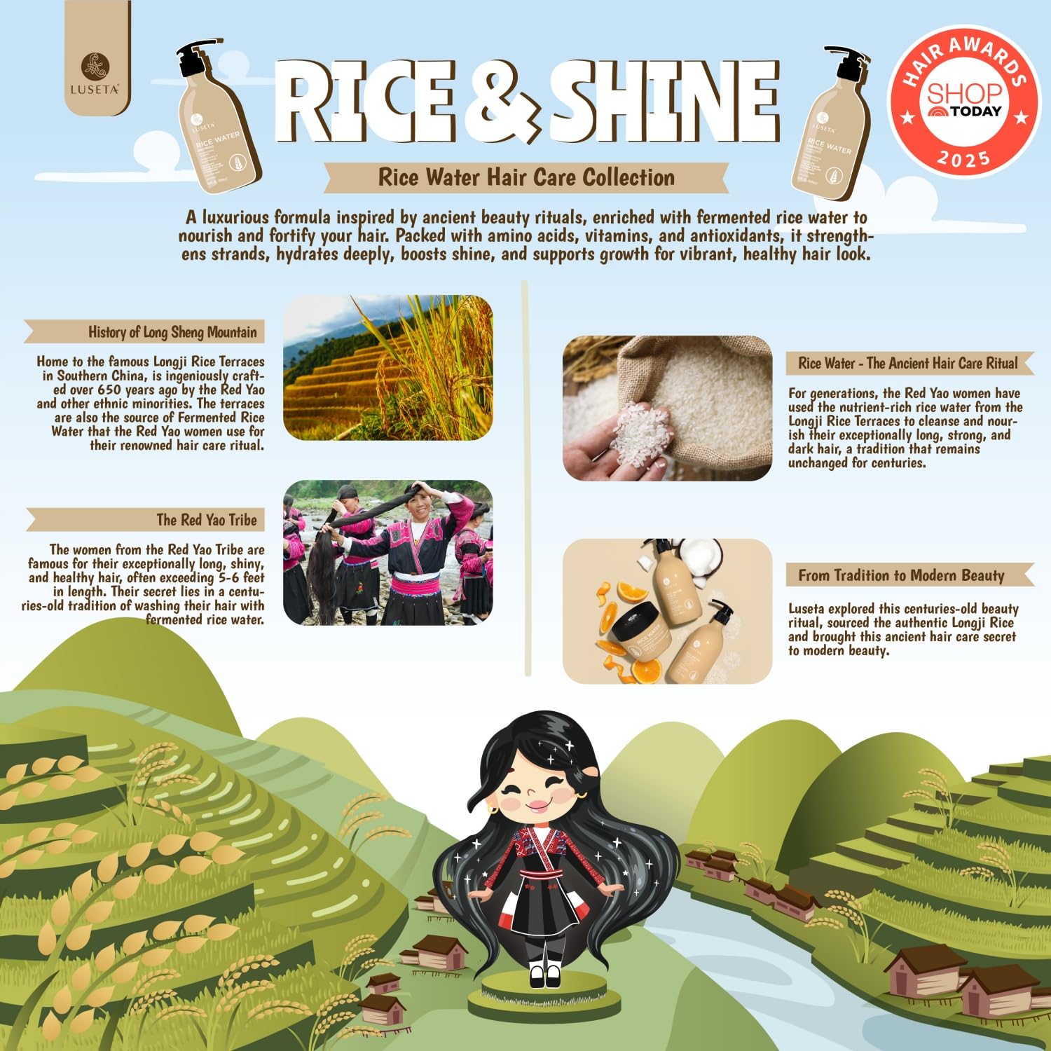- Ancient Rituals, Radiant Hair: Inspired by traditional Asian haircare rituals, our Rice Water Shampoo and conditioner set harnesses the power of fermented rice water to strengthen, hydrate, and revitalize hair. Experience silky, resilient strands with a natural shine and effortless softness.