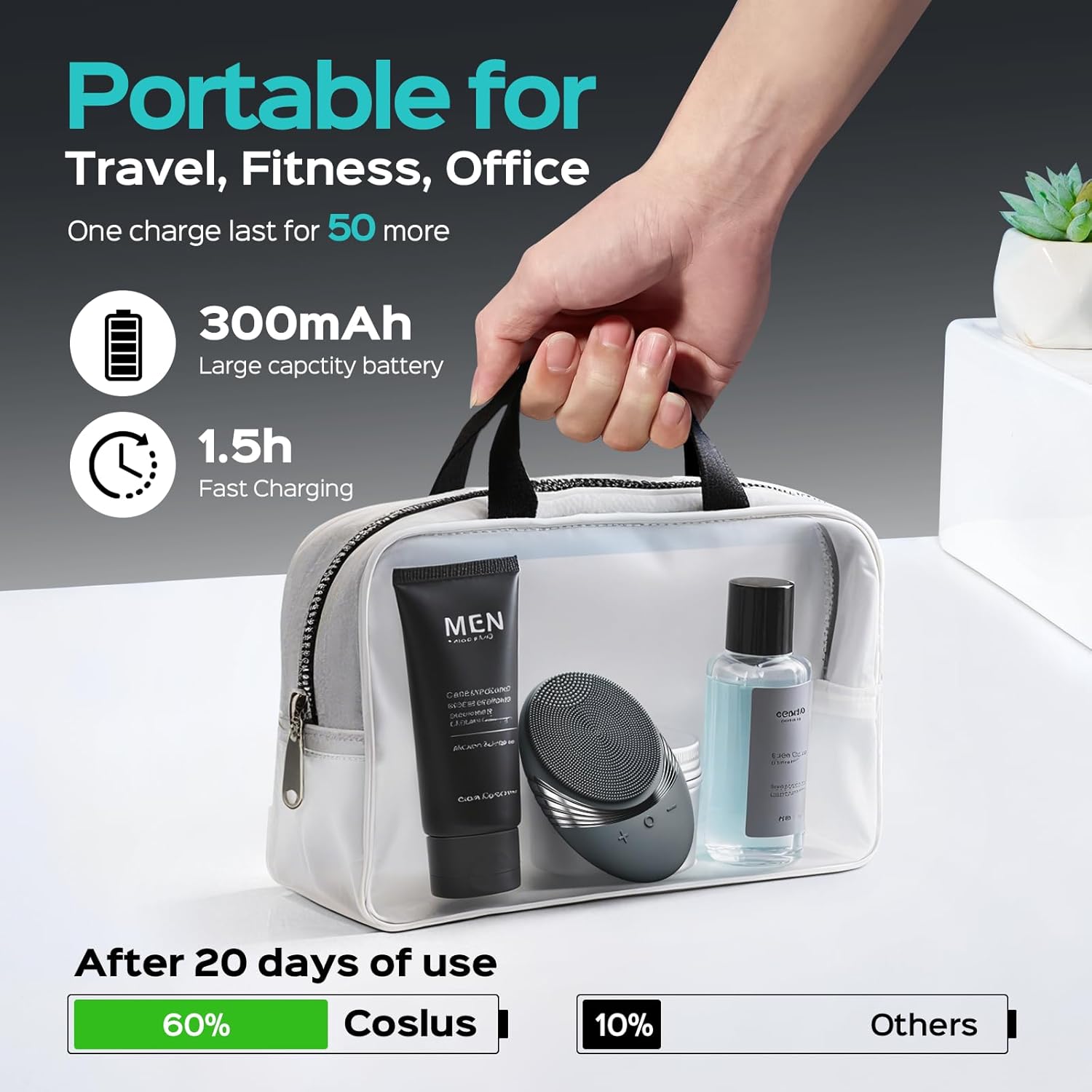 - Waterproof and Travel-Ready for Active Lifestyles: Built with an IPX7 waterproof rating, the COSLUS face scrubber is safe to use in the shower or at the sink. Its compact and cordless design fits easily in your gym bag or carry-on, making it the ideal companion for frequent travelers, business professionals, or backpackers on the go. Whether you're prepping your skin before a meeting or refreshing it after a long flight, this portable Face Scrubber supports consistent deep cleansing and massage benefits, helping your skin stay refreshed anywhereโeven on the road