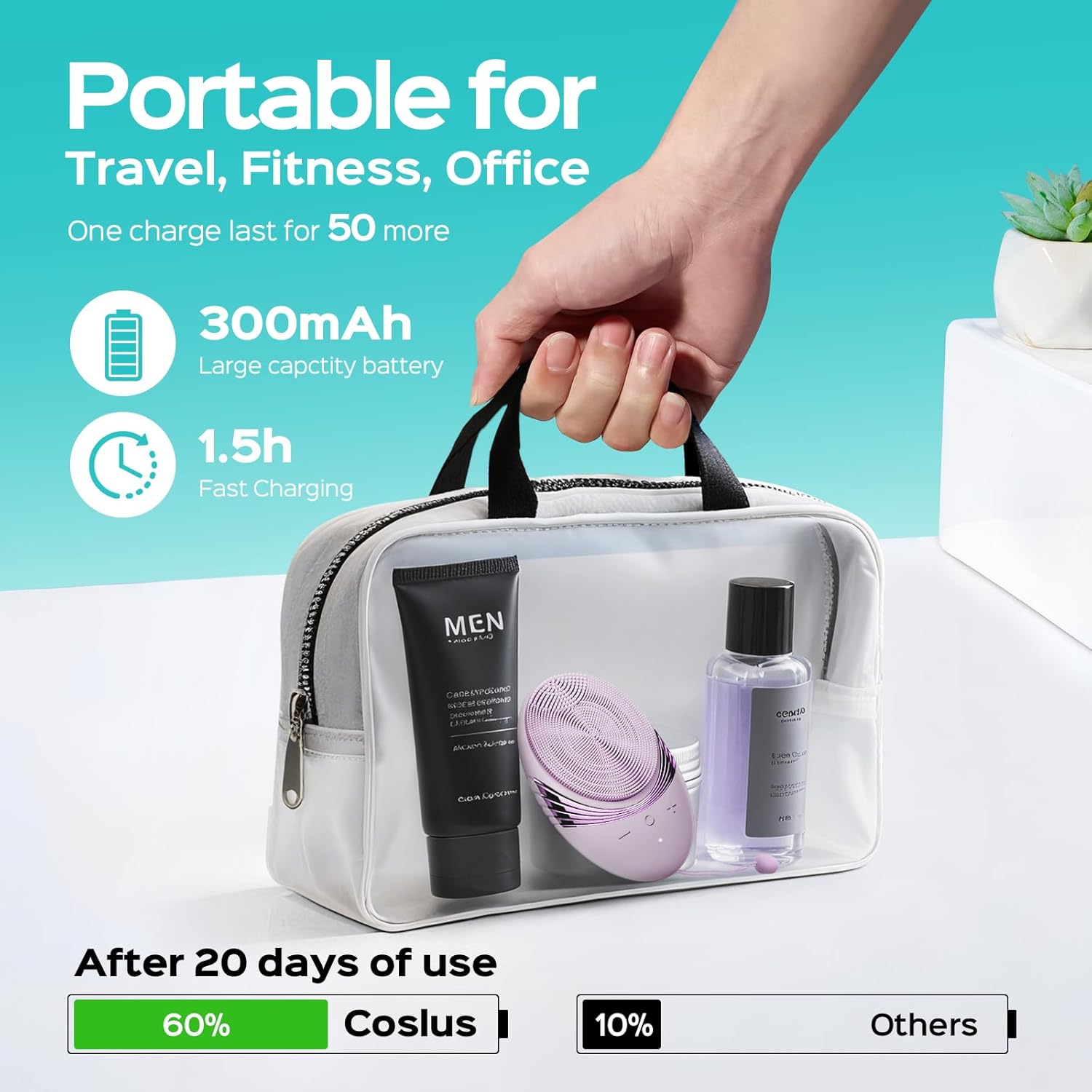 - Waterproof and Travel-Ready for Active Lifestyles: Built with an IPX7 waterproof rating, the COSLUS face scrubber is safe to use in the shower or at the sink. Its compact and cordless design fits easily in your gym bag or carry-on, making it the ideal companion for frequent travelers, business professionals, or backpackers on the go. Whether you're prepping your skin before a meeting or refreshing it after a long flight, this portable Face Scrubber supports consistent deep cleansing and massage benefits, helping your skin stay refreshed anywhereโeven on the road