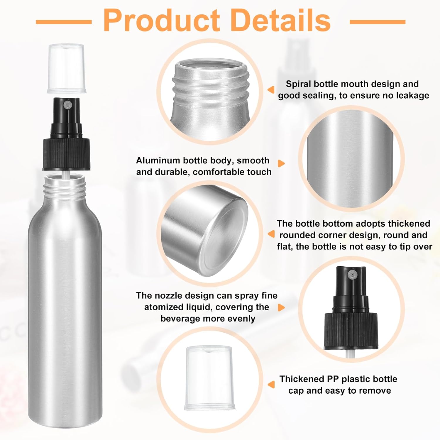 - Applications - This metal refillable container is widely used in kitchens, bathrooms, offices, travel vacations, etc., and can be used to store floral water, perfume, spray, essential oils, air freshener, toner, etc