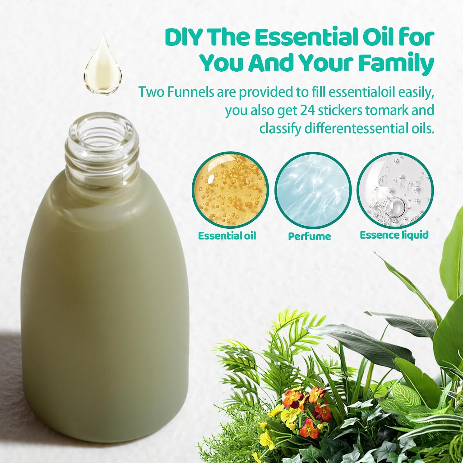 - Premium Materials: Colorful thick glass bottles body with stainless steel roller balls for essential oils, plastic cap and wooden cap