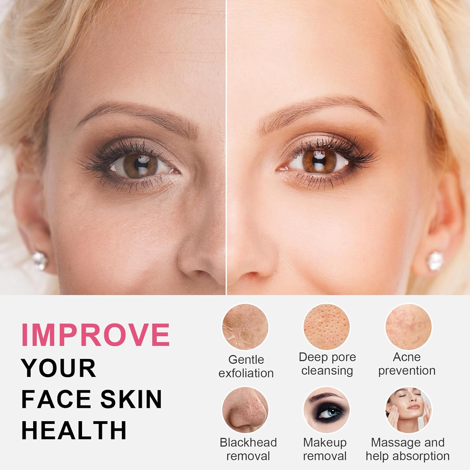 - 【3 in 1 Facial Cleansing Brush】 Equipped with 3 replaceable cleaning heads, 2 skin-friendly silicone bristle brush head and a soft bristled brush head for massaging; The replaceable brush head meets all cleansing needs. Suitable for all types of skin, even sensitive skin,skin pores without damage or expansion of your pores.