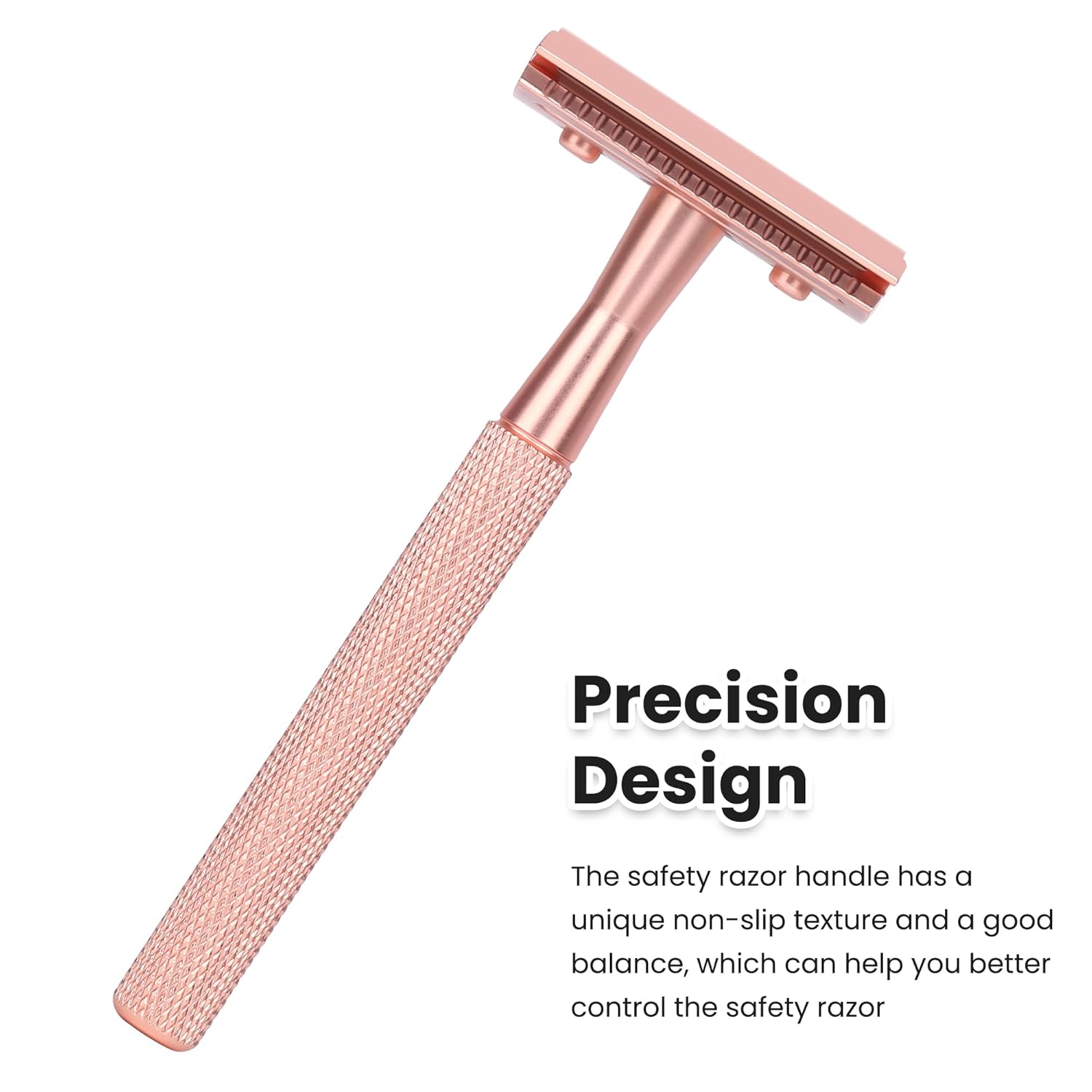 Double Edge Safety Razor For Woman With Stand and 10 Premium Stainless Steel Reusable Safety Razor, Razors For Shaving, Rose Gold