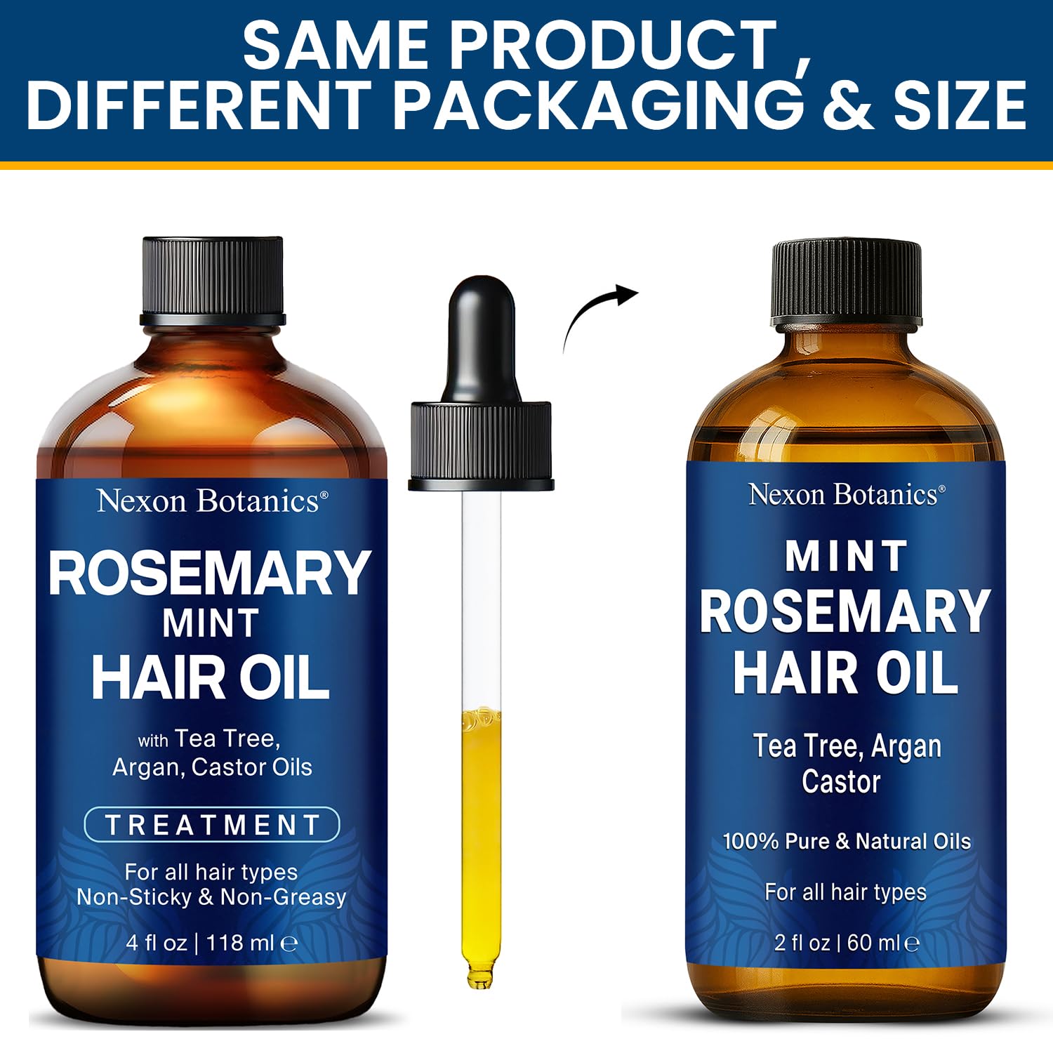Mint Rosemary Oil for Hair Growth 2 fl oz – Lightweight, Non-Greasy Formula with Peppermint – Strengthens Strands for Healthier, Thicker Look – Nexon Botanics