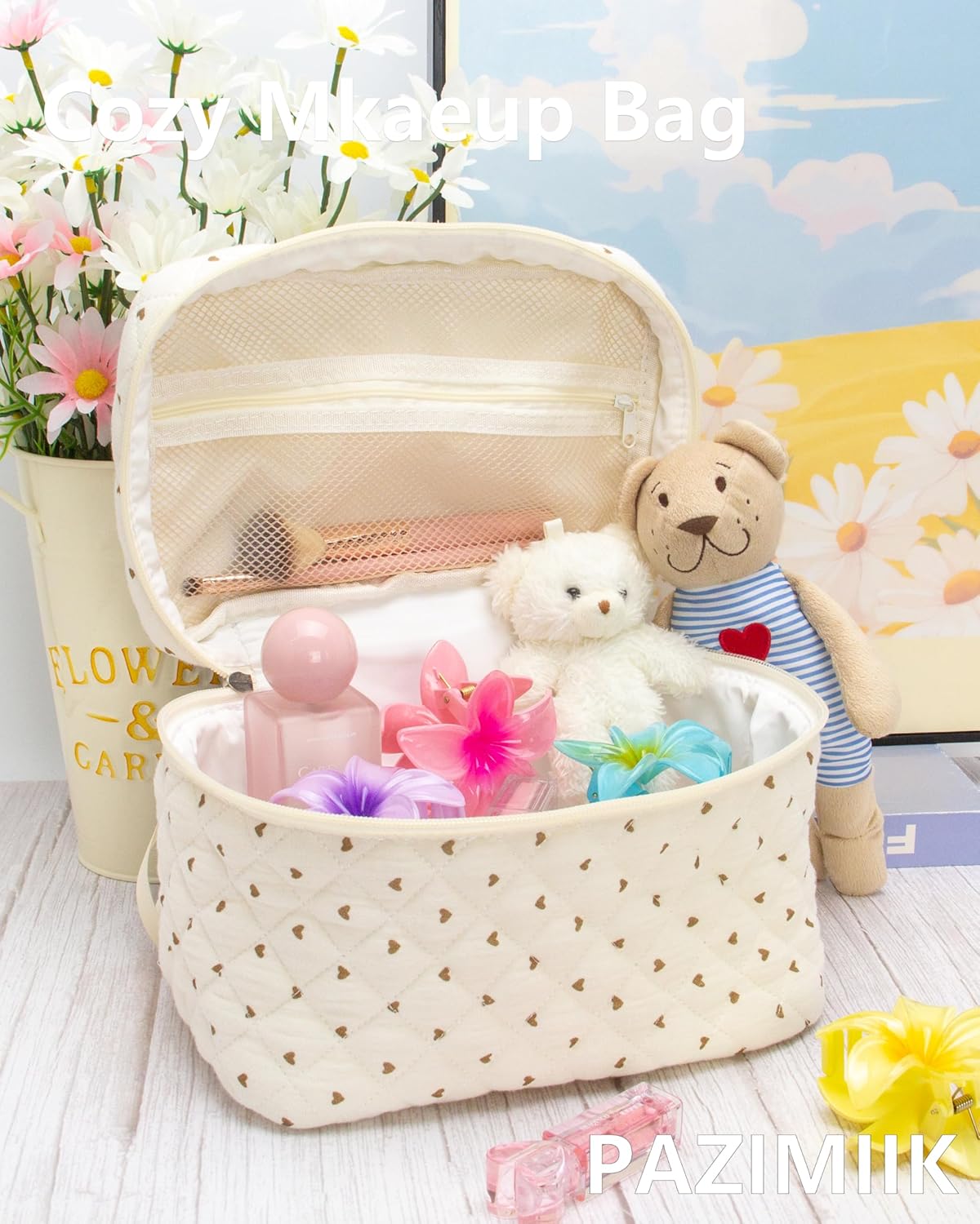 - Softness and Style: The quilted cotton exterior offers a soft and comfortable texture, combining style with functionality for your daily makeup needs.