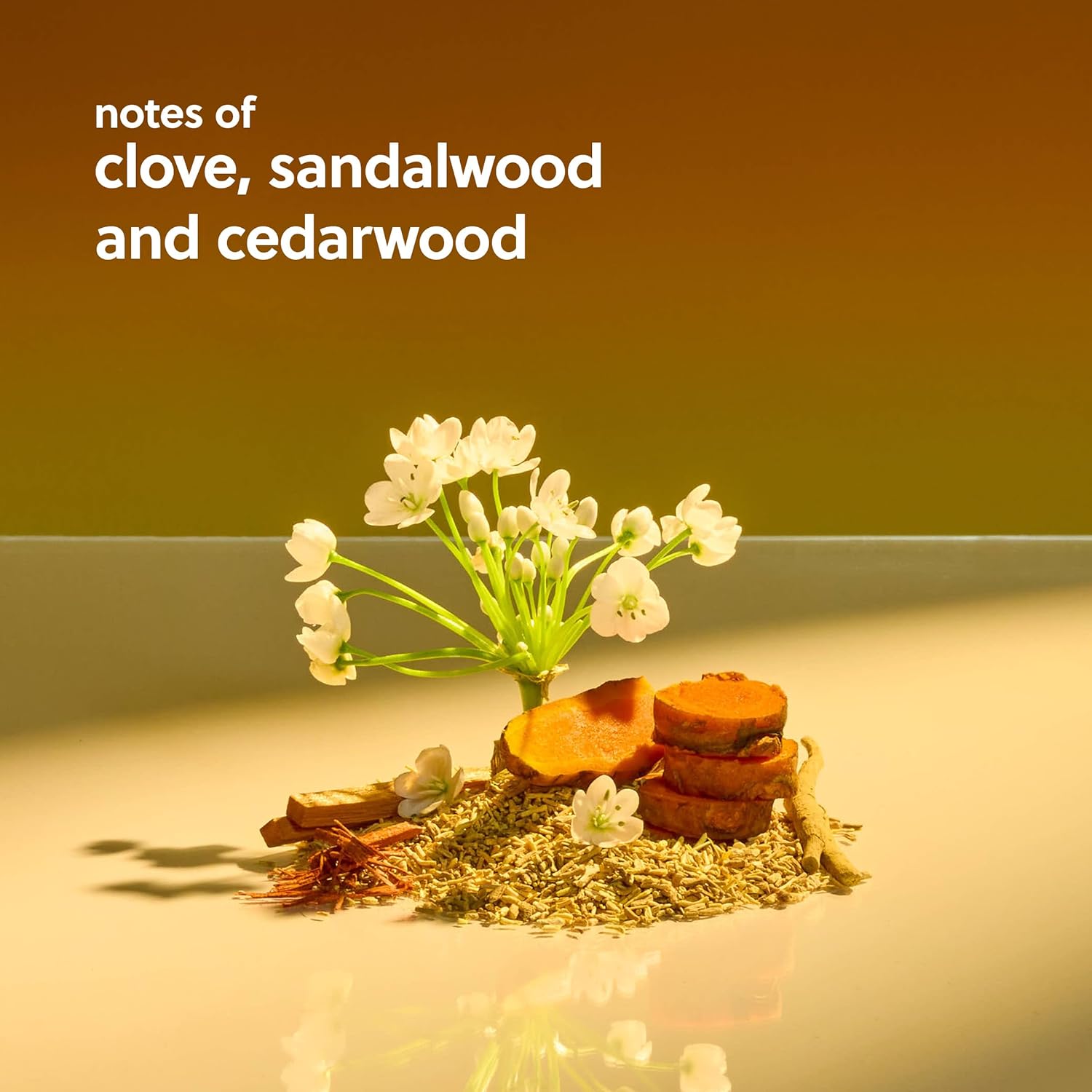 - A grounding, woodsy scent that emits a warm aroma with notes of clove, sandalwood and cedarwood