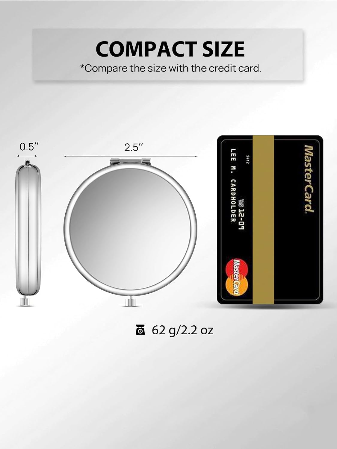 - PORTABLE SIZE & 7 COLORS AVAILABLE: Small mirror that is only 2.5 inches diameter. Fits nicely in your bag, purse, or even your pocket—seven colors to choose from Gold, Rose Gold, Black, Pink, Silver, Cyan and Light Blue