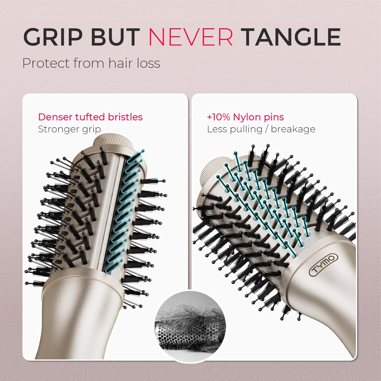 - STRONGER GRIP, LESS PULLING - The gentle grip system with 3 specialized bristle types work together to lift and smooth hair without tugging. Fine strands stay protected while thick hair gets maximum control.