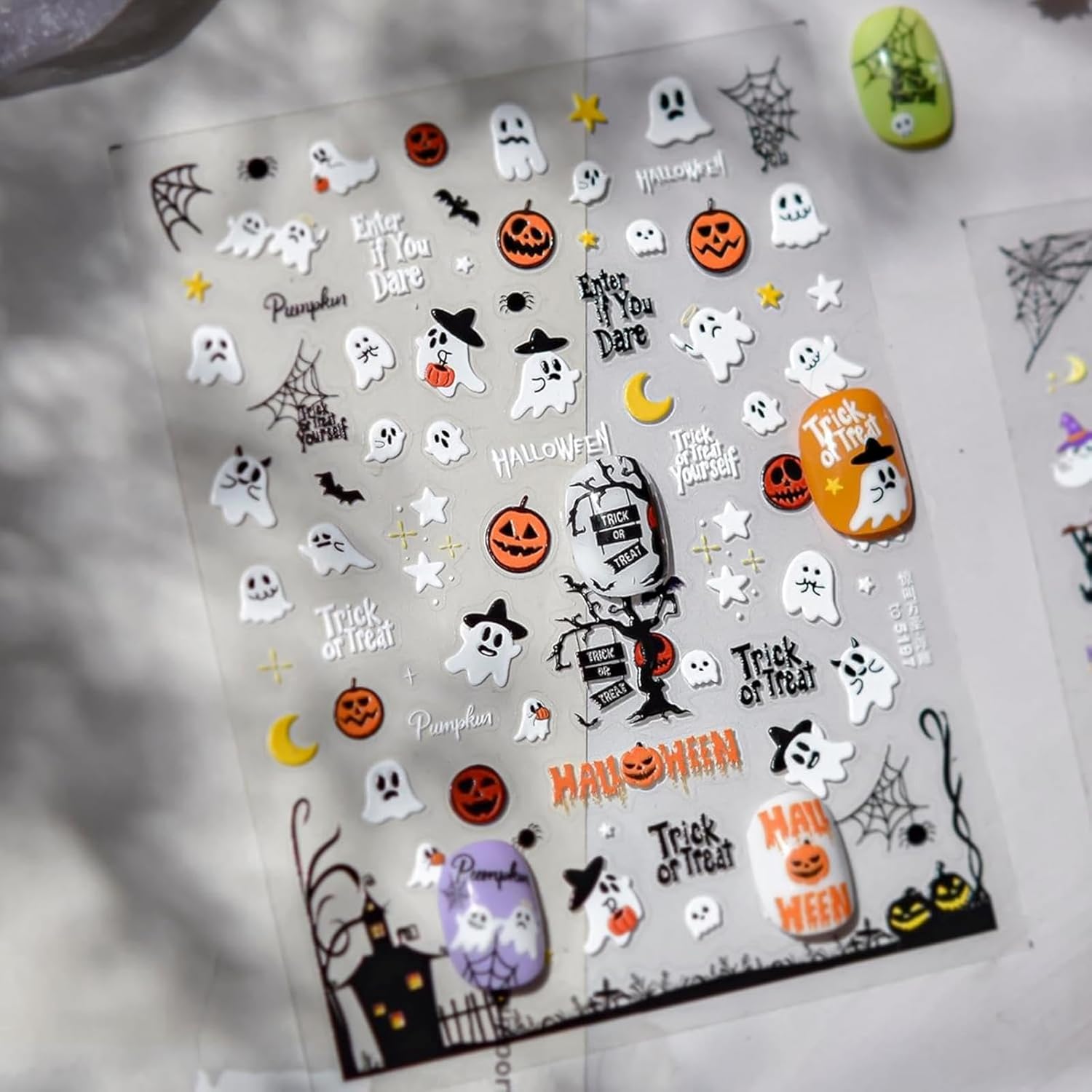 - Package Contents:You will get 1 sheet ghost nail stickers for acrylic nails supply. Many lovely patterns of the haunted house nail stickers for you to choose from, colorful design, to meet your rich imagination of nail DIY. These are suitable for acrylic nails