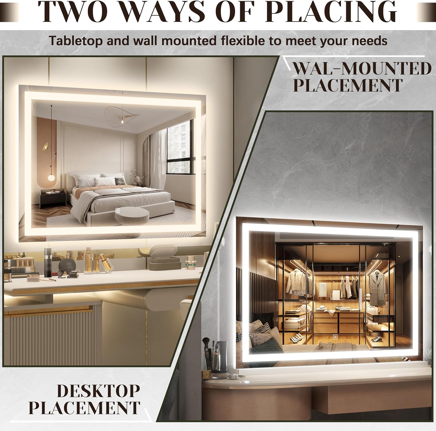 - 【2-in-1 Desktop & Wall Mount Design】 Included removable base and wall-mount hardware let you choose between a tabletop setup or space-saving wall installation. No complex tools needed—assemble in 5 minutes for a customized beauty station. Ideal for small bedrooms, bathrooms, or dressing areas where versatility matters.