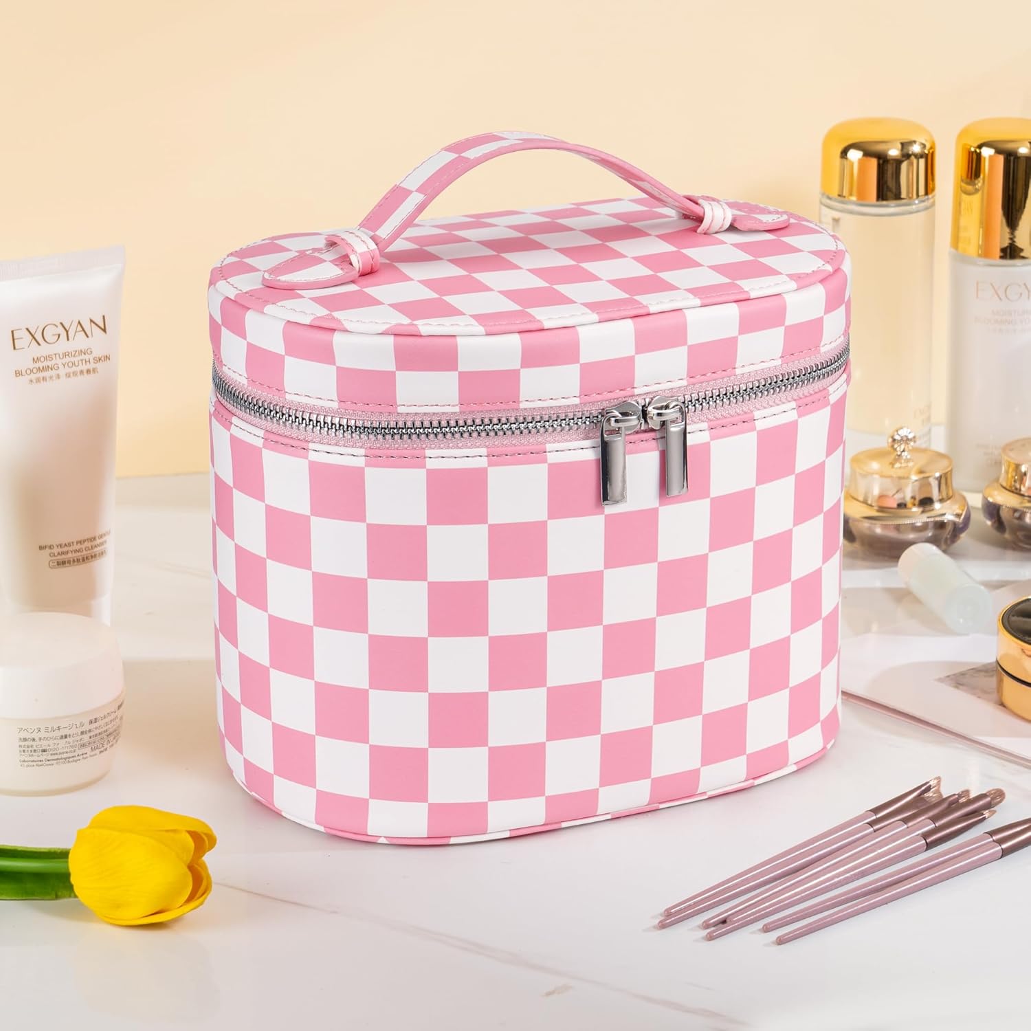- Large Capacity: This makeup bag measures 8×6×6.5 inches, offering ample space for cosmetics, toiletries, and skincare. Its portable size makes it ideal for travel, while still holding full-size bottles, brushes, and daily essentials with ease.