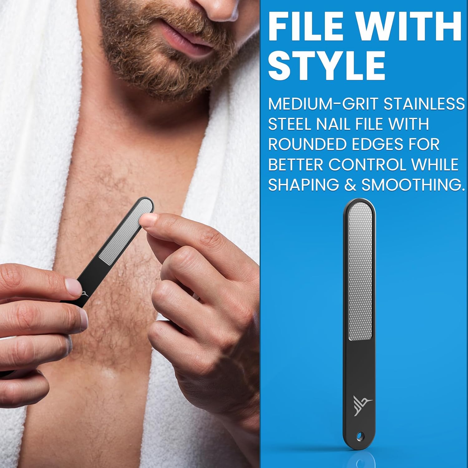 - ENGINEERED FOR PRECISION & VERSATILITY – Crafted from high-grade stainless steel, each tool in this men’s grooming kit is built for lasting sharpness, rust resistance, and total control. Includes a medium-grit stainless steel nail file with rounded edges for easier shaping and smoothing, plus a double-edged cuticle pusher and scoop-edge cleaner for detailed nail care.