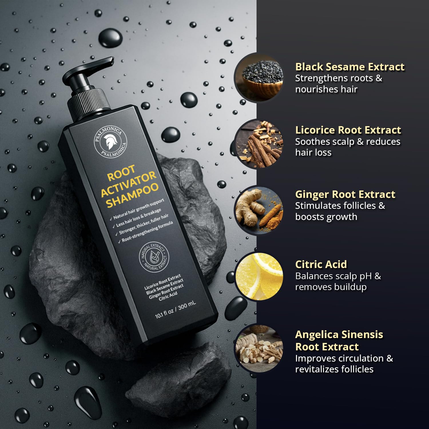 - ๐ฟ Herbal Formula for Hair Regrowth: Enriched with over 12 herbal ingredients, including Ginger Root, Black Sesame, Polygonum Multiflorum, Angelica Sinensis, Licorice Root extract and Rosemary Oil, this shampoo supports healthy hair growth from the scalp up.